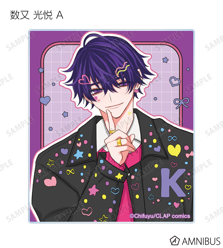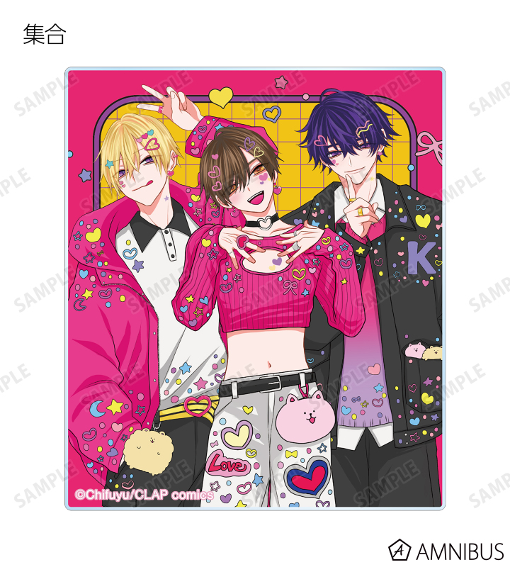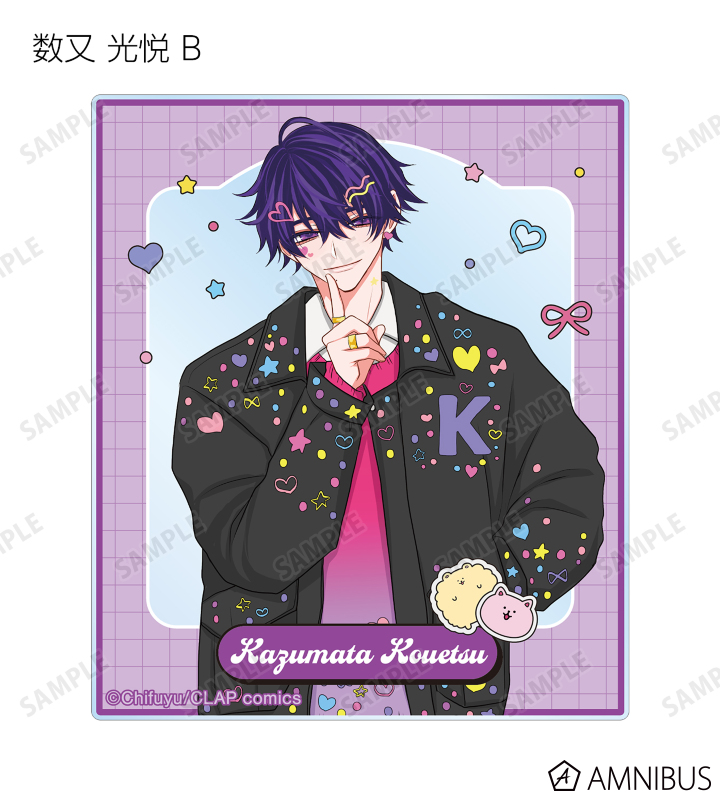 ちふゆ先生描き下ろしイラストの桐ヶ谷 悠然、佐江城 銀河、数又 光悦をアクリルカードに仕上げました。