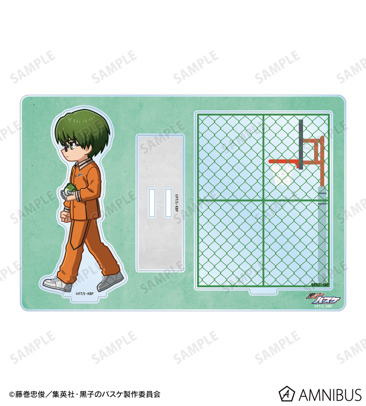 緑間真太郎が歩いているちびキャラを新たに描き起こし、パーツ付きのBIGなアクリルスタンドに仕上げました。