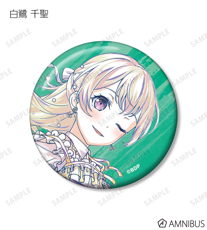 丸山 彩、氷川 日菜、白鷺 千聖、大和 麻弥、若宮 イヴ、高松 燈、千早 愛音、要 楽奈、長崎 そよ、椎名 立希のイラストを新たなタッチで魅力的に表現し、缶バッジに仕上げました。