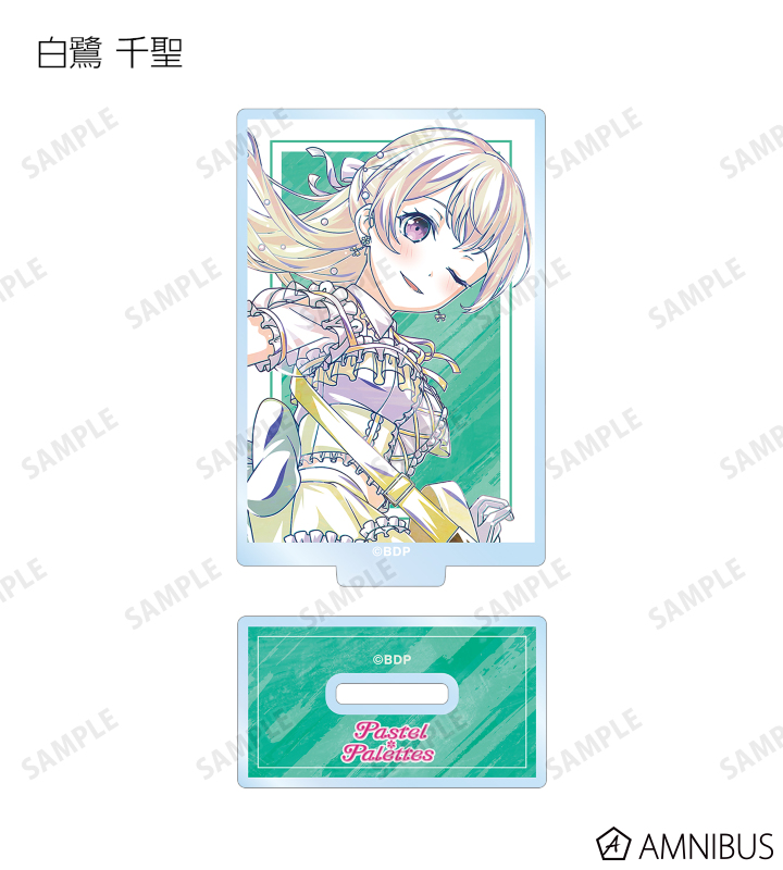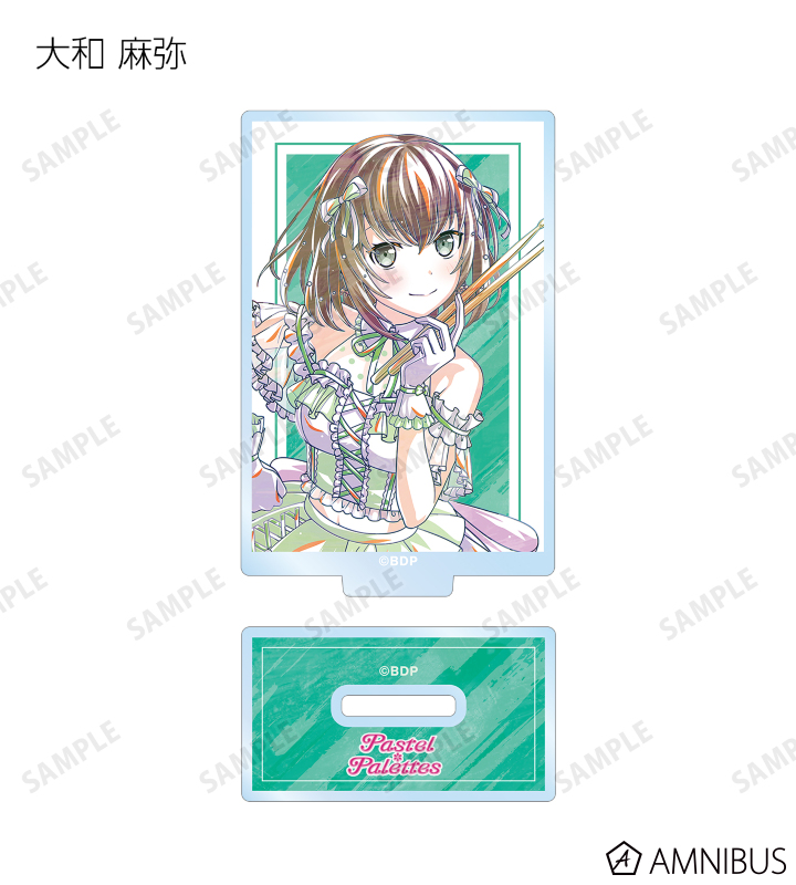 丸山 彩、氷川 日菜、白鷺 千聖、大和 麻弥、若宮 イヴ、高松 燈、千早 愛音、要 楽奈、長崎 そよ、椎名 立希のイラストを新たなタッチで魅力的に表現し、バンドカラーと組み合わせてアクリルスタンドに仕上げました。