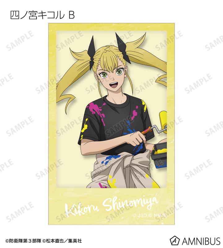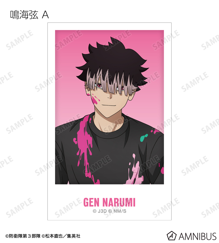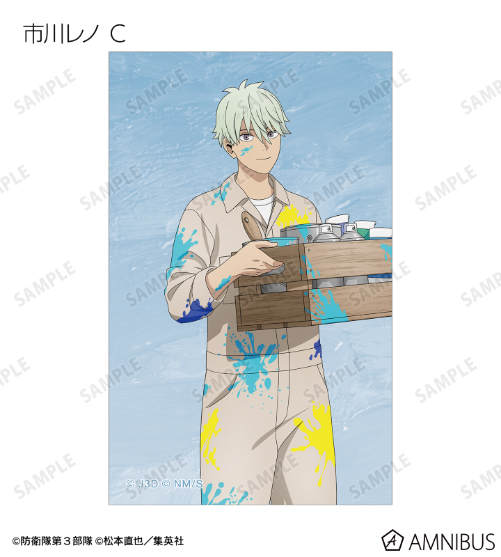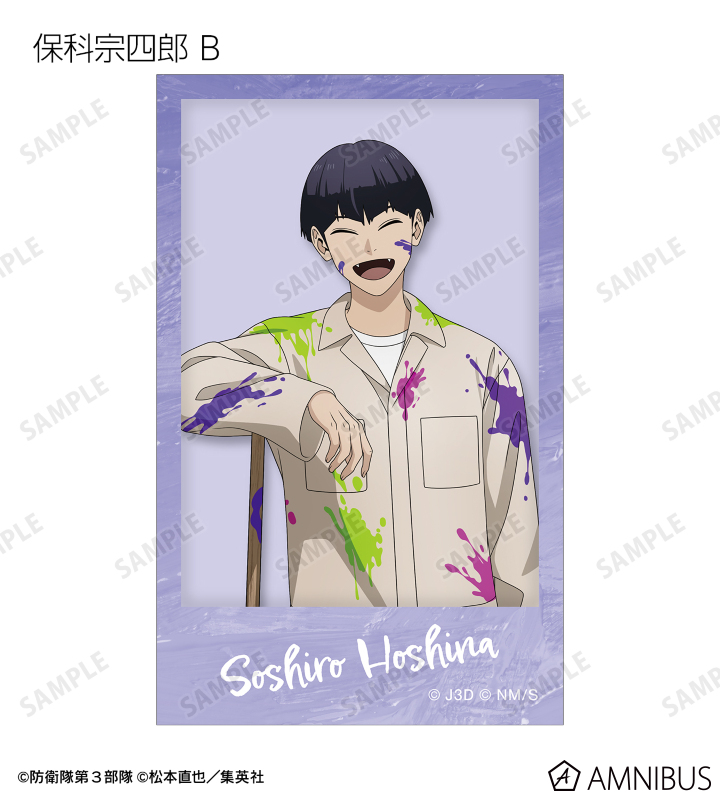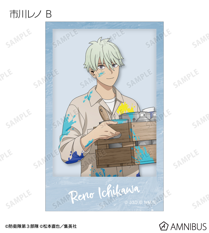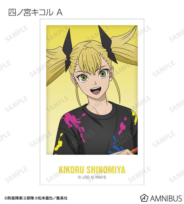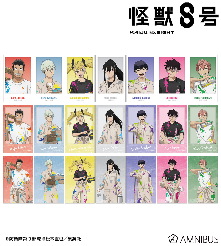 日比野カフカ、市川レノ、四ノ宮キコル、亜白ミナ、保科宗四郎、鳴海弦、古橋伊春の描き下ろしイラストをイラストカードに仕上げました。