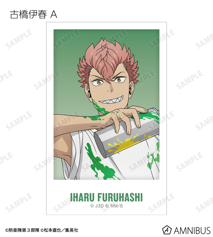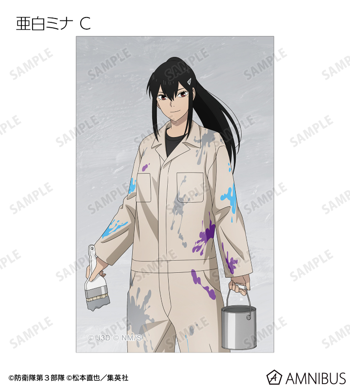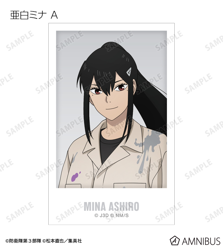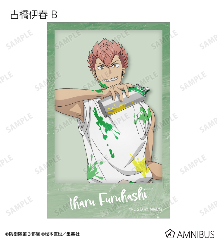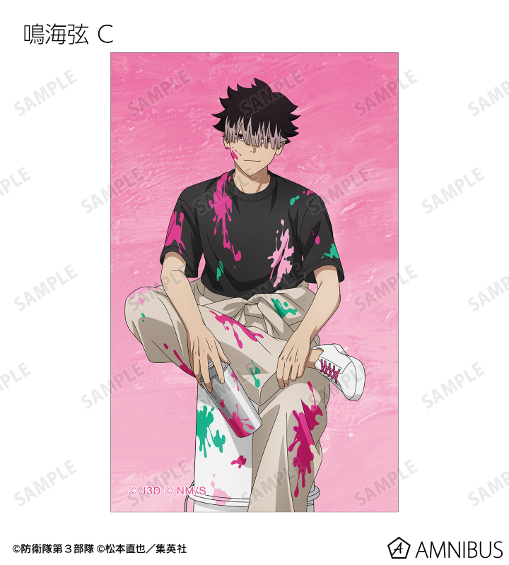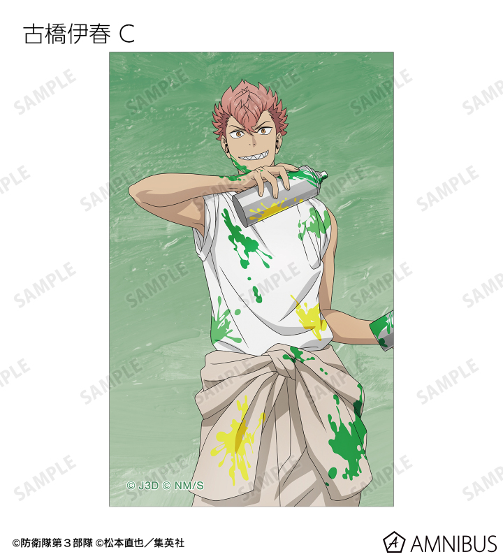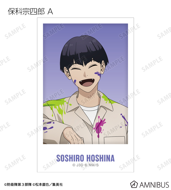 日比野カフカ、市川レノ、四ノ宮キコル、亜白ミナ、保科宗四郎、鳴海弦、古橋伊春の描き下ろしイラストをイラストカードに仕上げました。