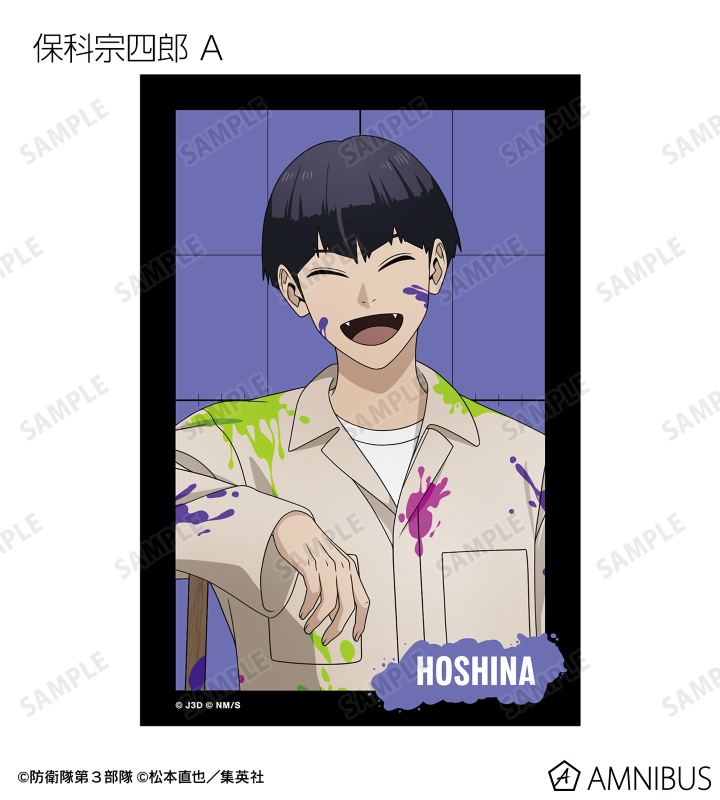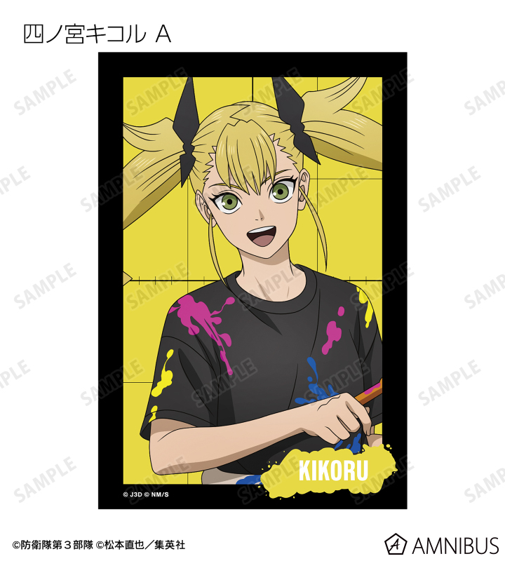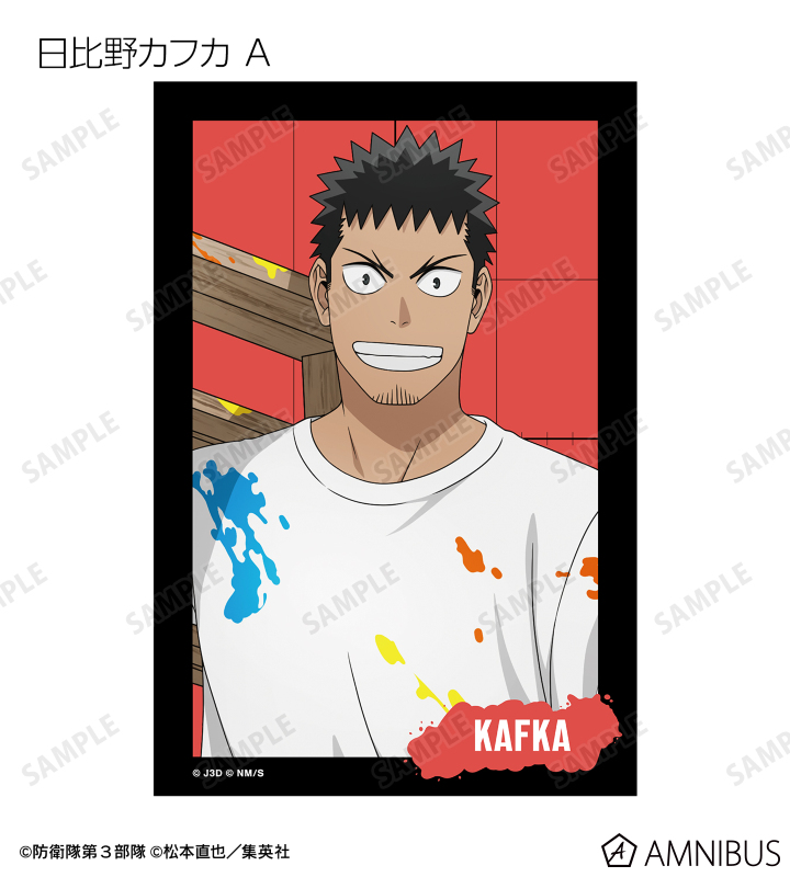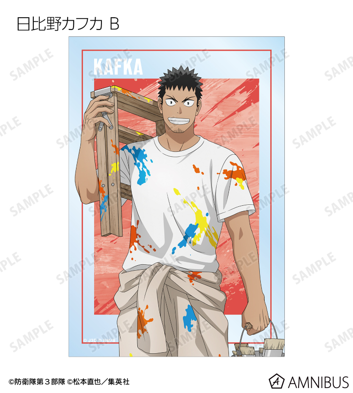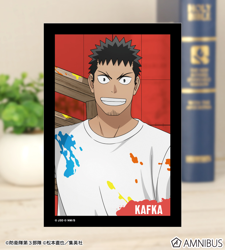 日比野カフカ、市川レノ、四ノ宮キコル、亜白ミナ、保科宗四郎、鳴海弦、古橋伊春の描き下ろしイラストをクリアカードに仕上げました。