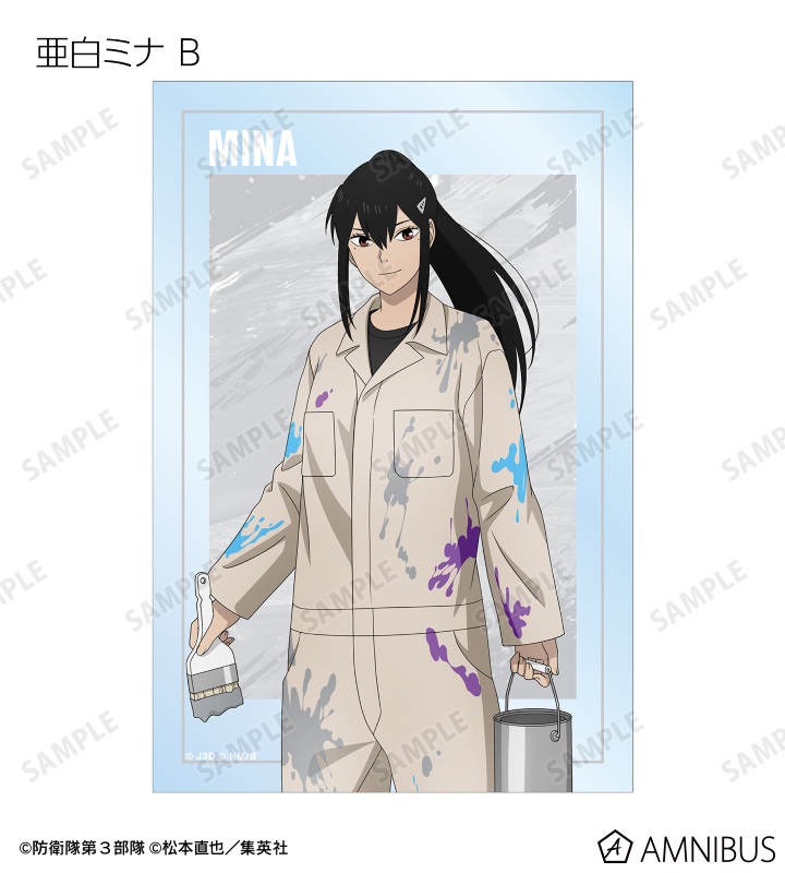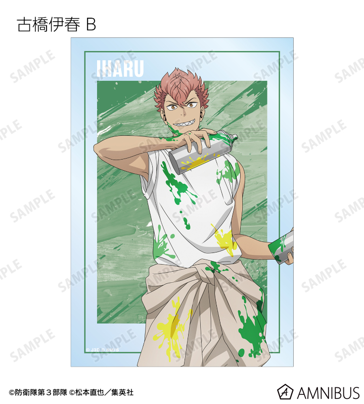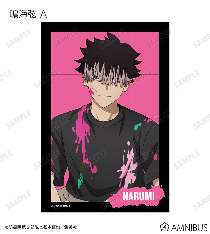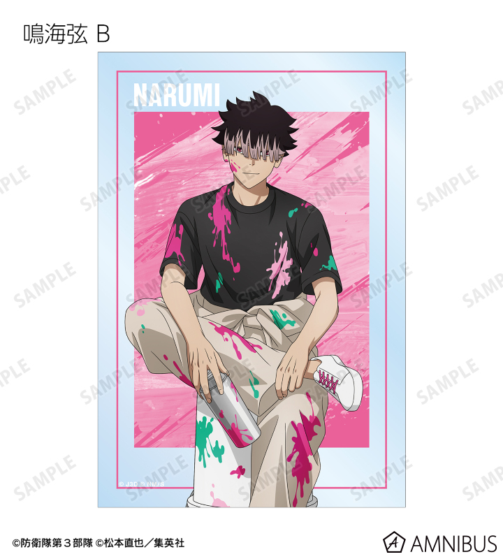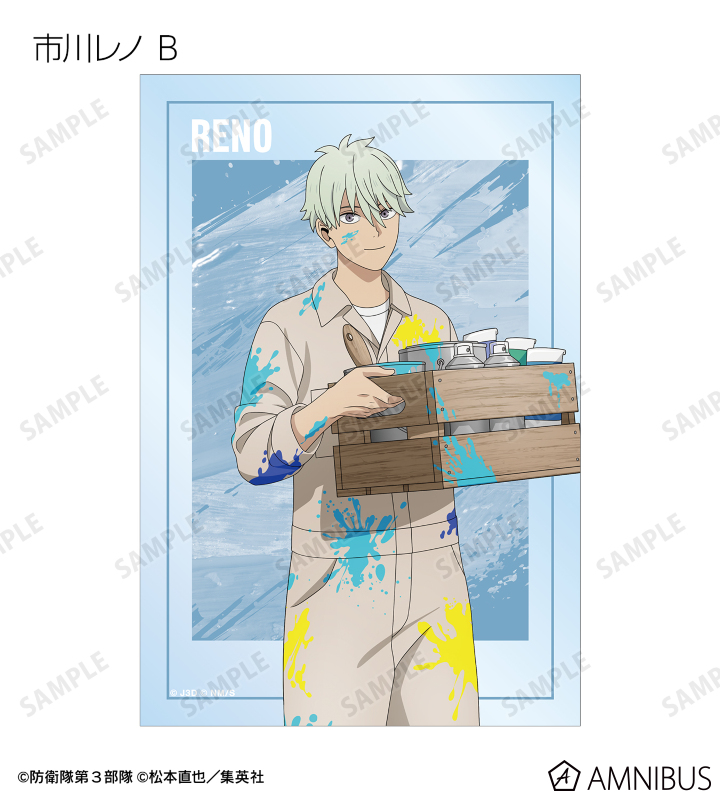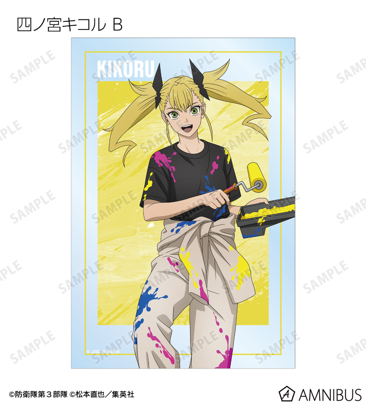 日比野カフカ、市川レノ、四ノ宮キコル、亜白ミナ、保科宗四郎、鳴海弦、古橋伊春の描き下ろしイラストをクリアカードに仕上げました。