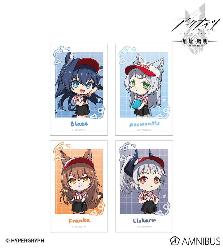 『アークナイツ【焔燼曙明/RISE FROM EMBER】』×「ROUND1」のコラボレーションアイテム「ちびキャラ アクティビティスタッフver. イラストカード4枚セット ver.B」の登場です。
