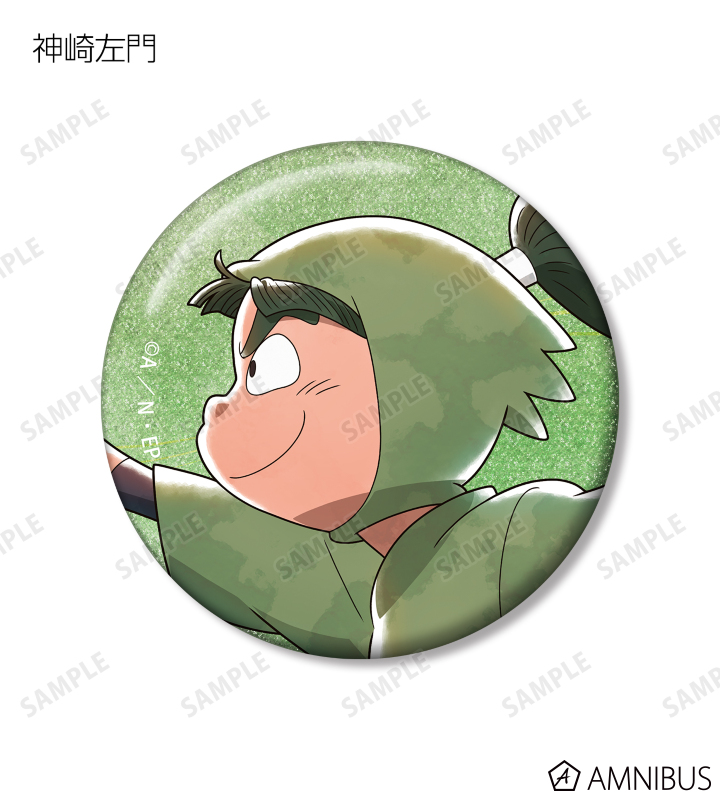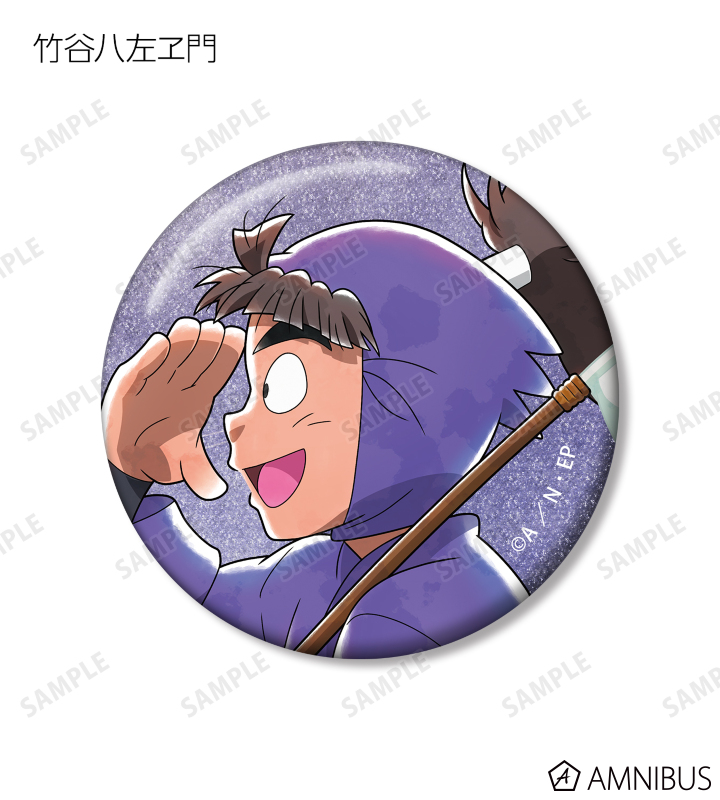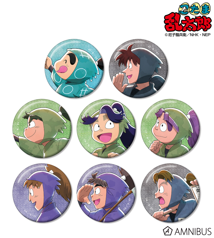 福富しんべヱ、土井半助、神崎左門、浦風藤内、三反田数馬、不破雷蔵、竹谷八左ヱ門、小松田秀作の描き下ろしイラストをグリッター加工を施した缶バッジに仕上げました。