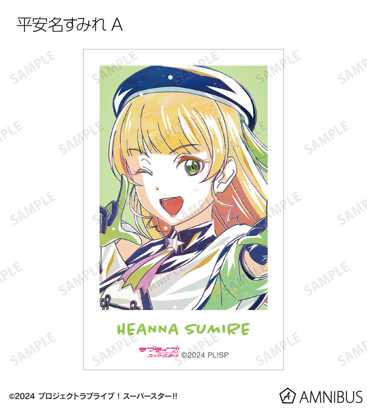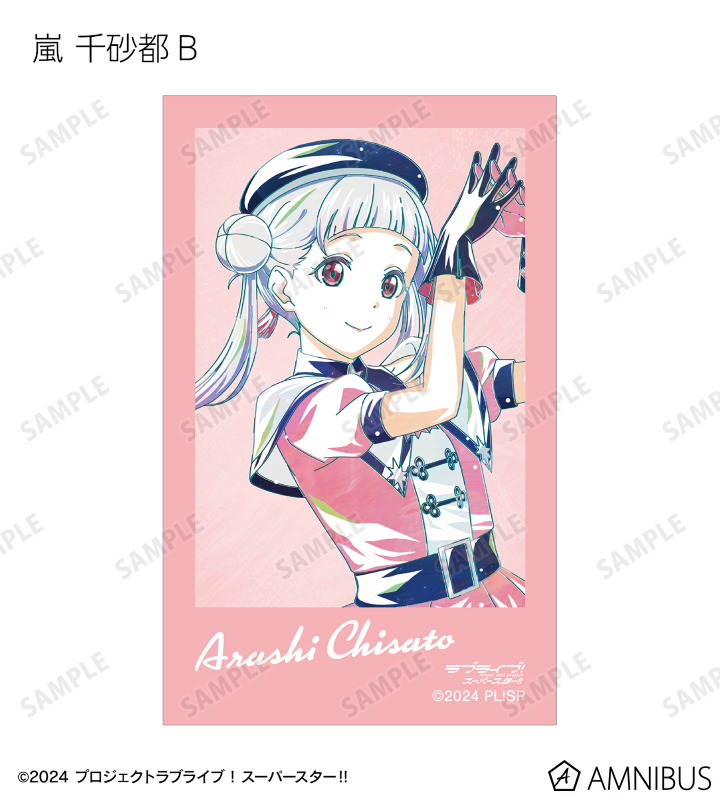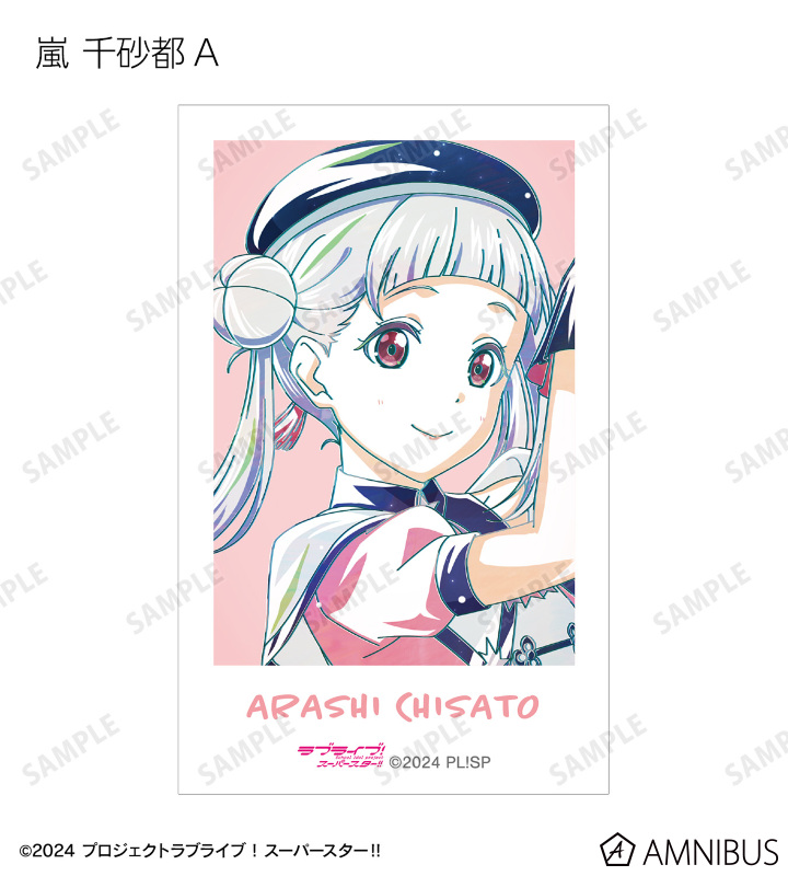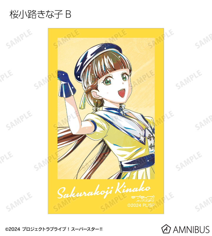 澁谷かのん、唐 可可、嵐 千砂都、平安名すみれ、葉月 恋、桜小路きな子、米女メイ、若菜四季、鬼塚夏美、ウィーン・マルガレーテ、鬼塚冬毬のイラストを新たなタッチで魅力的に表現し、インスタントカメラ風のイラストカード2枚セットに仕上げました。