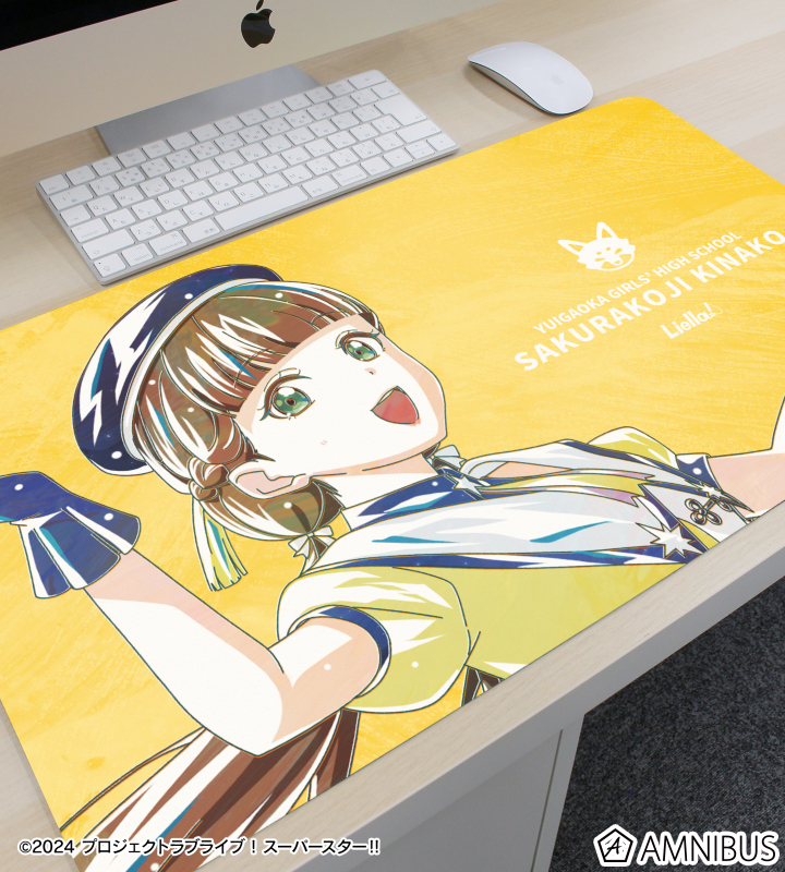 桜小路きな子のイラストを新たなタッチで魅力的に表現し、メンバーアイコン、学校名などを組み合わせたマルチデスクマットに仕上げました。