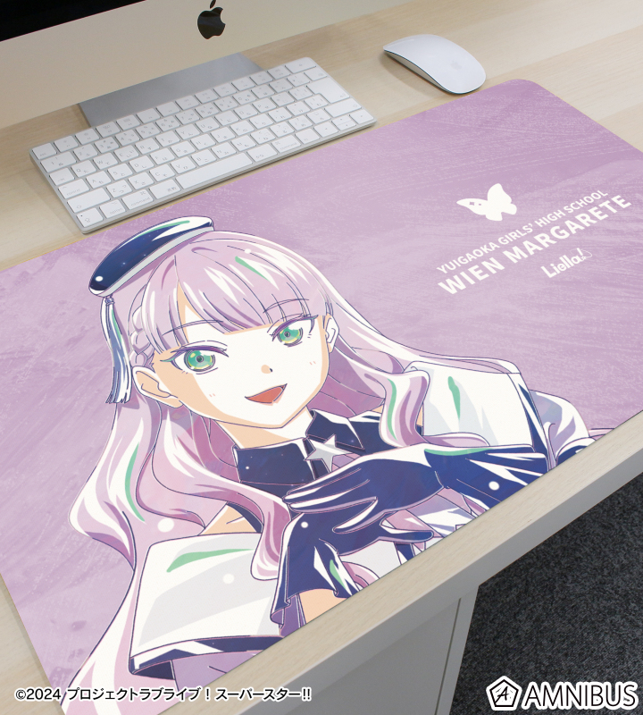 ウィーン・マルガレーテのイラストを新たなタッチで魅力的に表現し、メンバーアイコン、学校名などを組み合わせたマルチデスクマットに仕上げました。